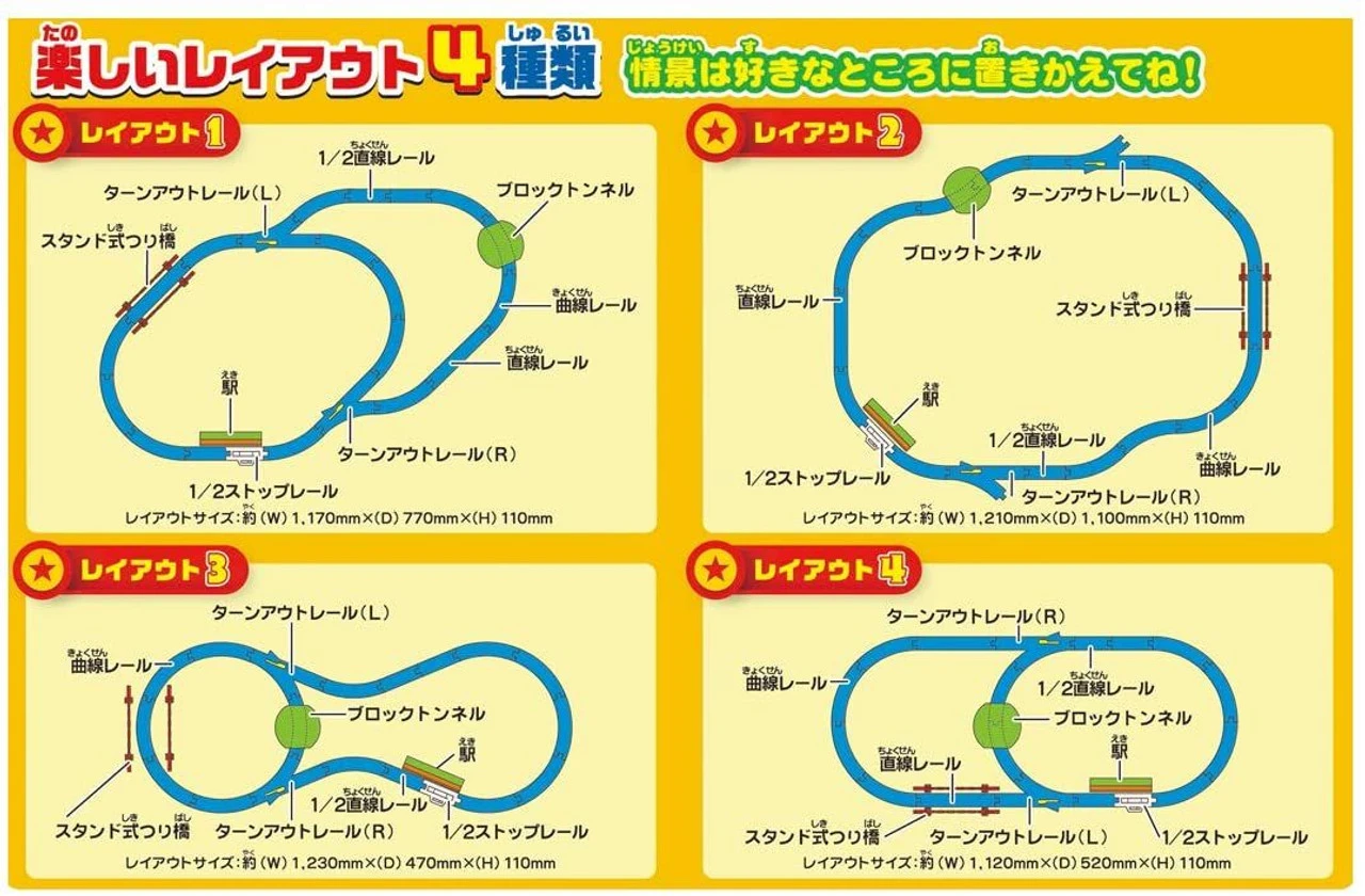 – 4 or more layouts can be rearranged! Scene parts also come with stations, tunnels, and suspension bridges.